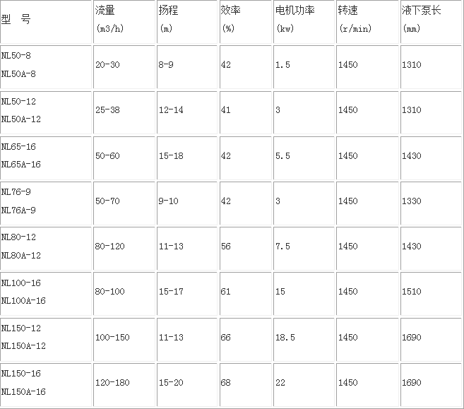 NL型污水泥漿泵可垂直或傾斜使用,占地面積小,蝸殼需埋在工作介質(zhì)中工作,容易啟動,不需弓I水,旋轉(zhuǎn)方向應(yīng)從電機(jī)尾部看是順時針方向工作。