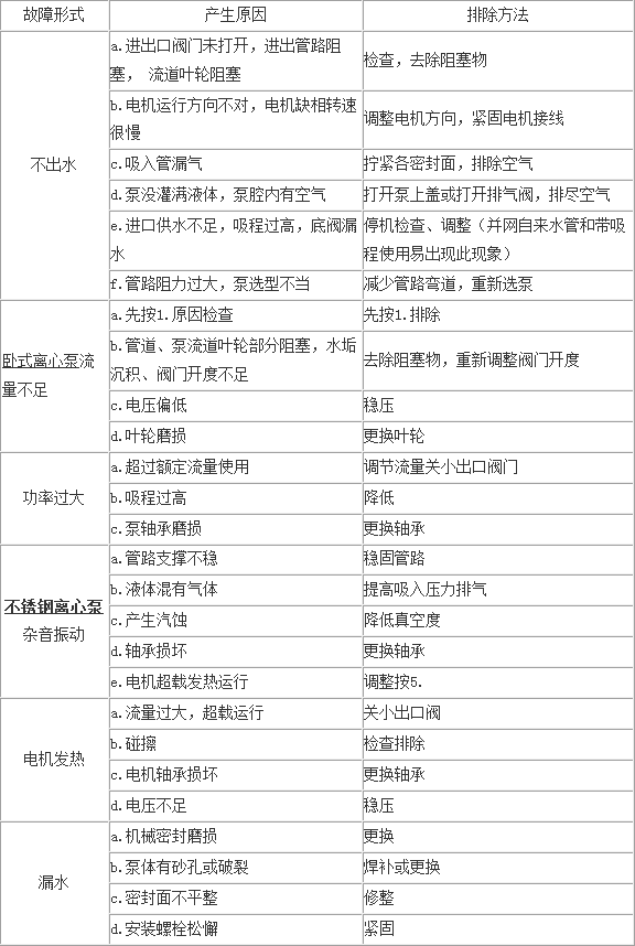 四、不銹鋼管道離心泵故障原因及解決方案